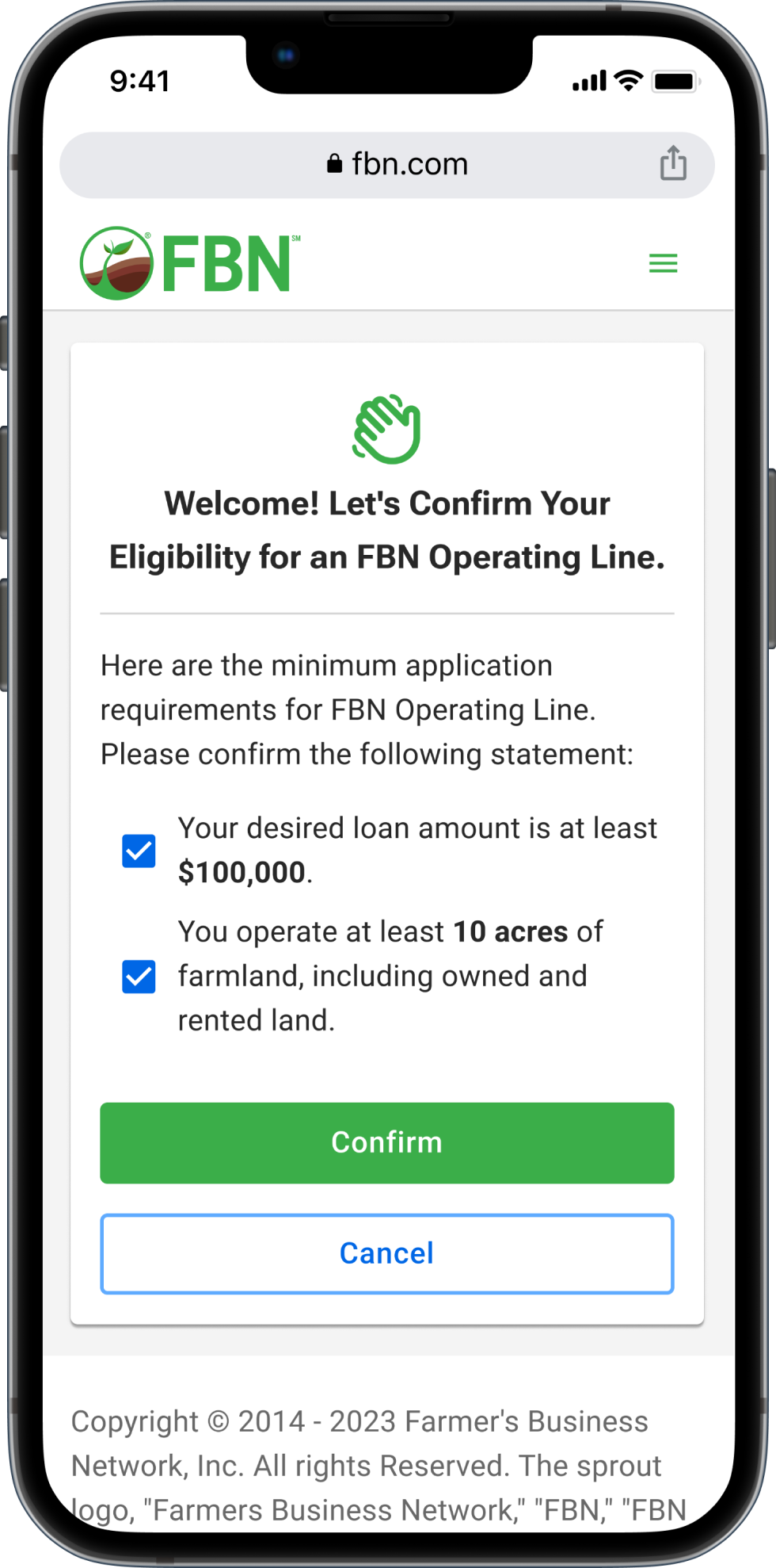 Farmers need to confirm the minimum requirements before starting a loan application.