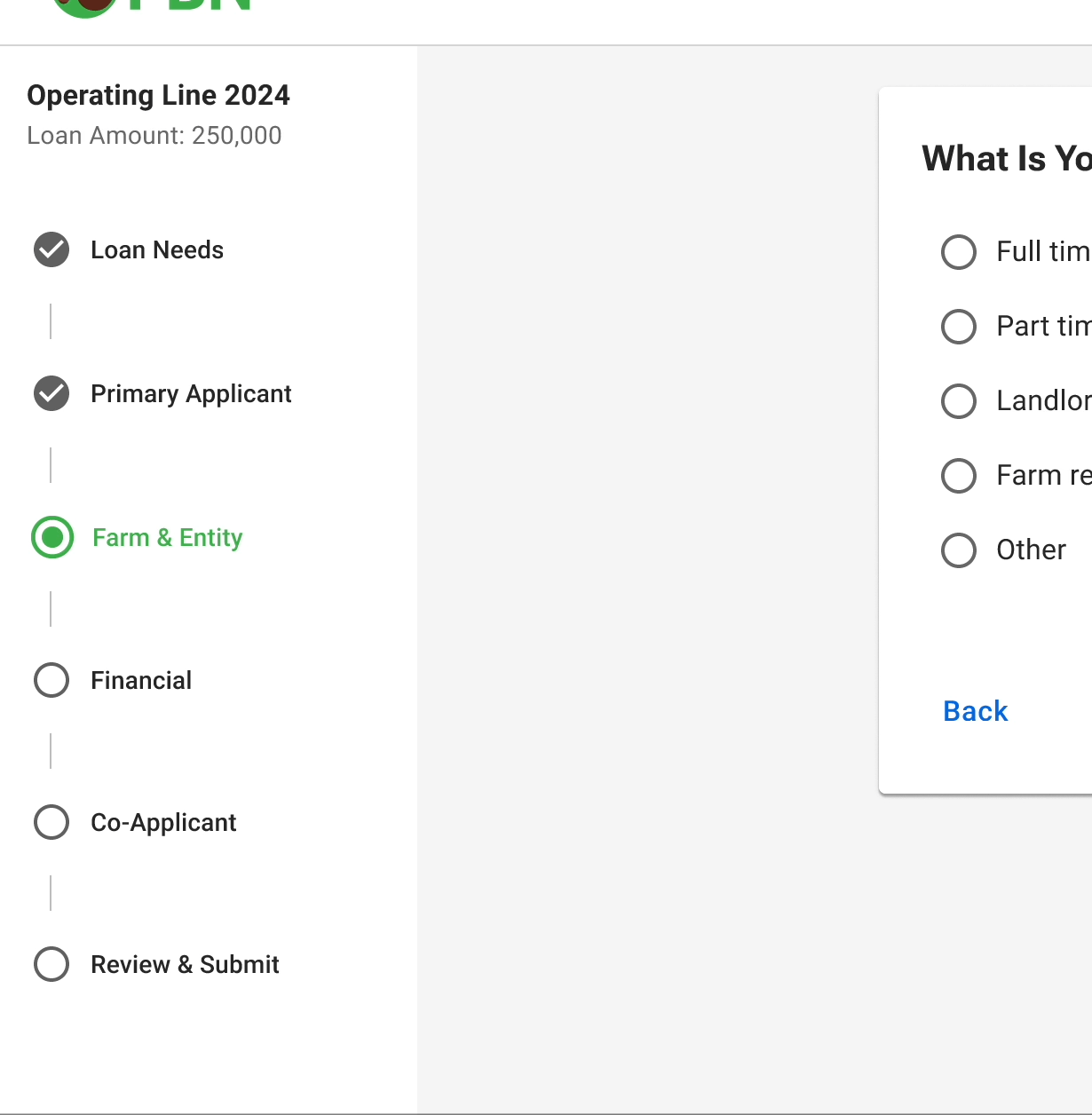 The existing DocuSign-based system was inefficient for both farmers and FBN Finance. It lacked support for complex sections (like collateral), making it difficult for farmers to complete the application without assistance, which often led to errors, delays, and increased loan rates. For FBN, the dependence on human intervention at nearly every stage slowed down the scaling of operations.